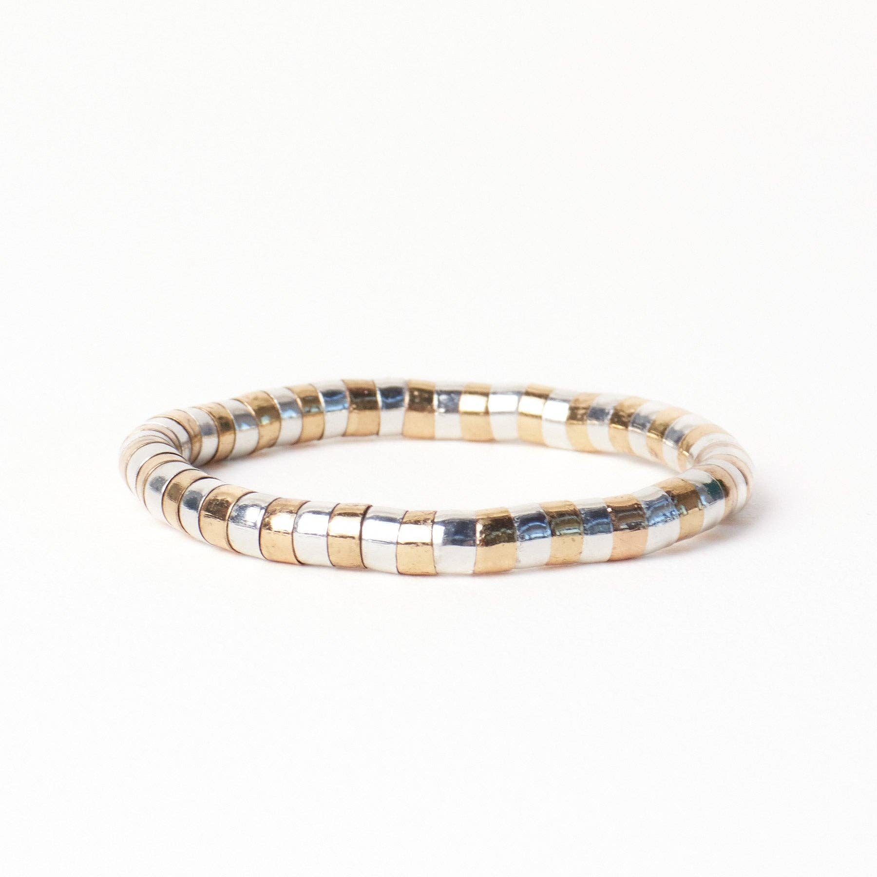 Lucille Round Bead Stretch Bracelet Alternating Brass + Silver Wholesale